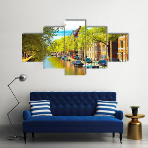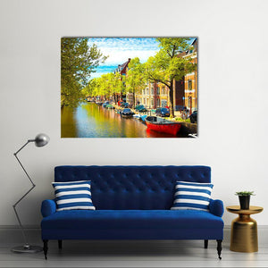 Picturesque Canal Houses with Boats Canvas Wall Art