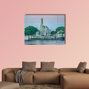 Old Style Buildings Buenos Aires presents a realistic cityscape of Buenos Aires featuring buildings, a lighthouse-like tall tower with a rounded top, water and trees. The grey, blue, green and white palette creates a serene daytime mood. It fits modern living rooms or workspaces that use city-inspired wall decor.