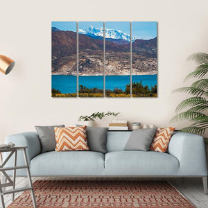 This canvas art captures the serene beauty of the Patagonian landscape, showcasing a majestic mountain range with snow-capped peaks and a vibrant blue lake. The realistic depiction invites a sense of calm, making it a stunning addition to any nature-inspired decor.