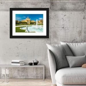 Capture the serene beauty of Zagreb with this stunning canvas featuring an ornate fountain surrounded by lush trees and a tranquil park setting. The bright palette of blue, yellow, and green creates a cheerful and vibrant atmosphere, perfect for enhancing any space.
