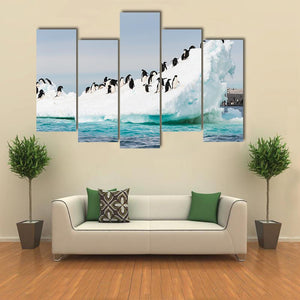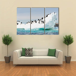 This captivating artwork features a serene colony of penguins resting on a massive iceberg in Antarctica. The cool blue and white palette captures the wild beauty of their icy habitat, making it a striking addition to any nature lover's wall.