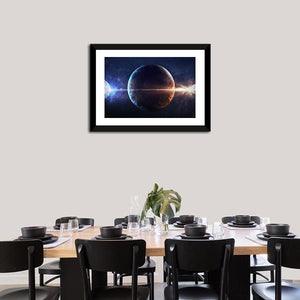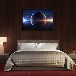 This canvas art features a mesmerizing depiction of planets and nebulae set against a cosmic backdrop. The glowing light streaks and textured planet surfaces evoke a sense of awe and wonder, making it an enchanting addition to your space-themed decor.