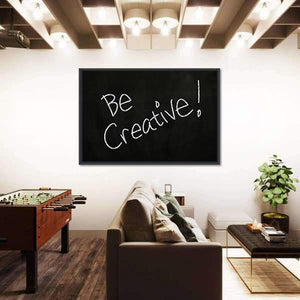 Embrace inspiration with the 'Be Creative' canvas wall art. Featuring a modern, minimalist design with a chalkboard background and handwritten text, this piece brings a positive vibe to any space.