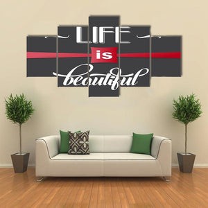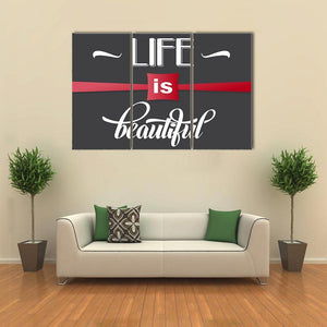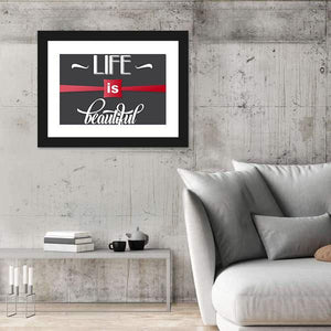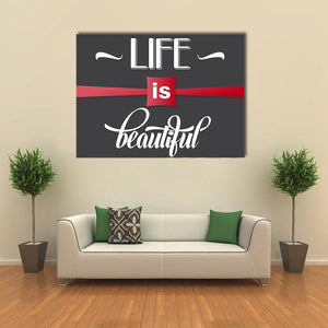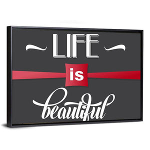 This canvas wall art features the inspirational phrase 'Life Is Beautiful' in a modern typography style. With a striking palette of white, red, and black, it brings an uplifting vibe that complements various room décors.