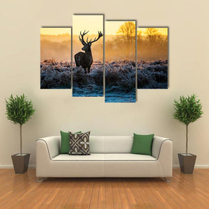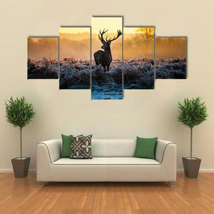This artwork features a majestic deer in a frosted field at sunrise, bringing a serene and tranquil mood to your space. The realistic depiction highlights the beauty of nature and the peacefulness of a quiet morning.