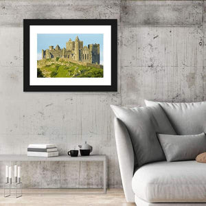 This canvas features the historic Rock of Cashel set atop a grassy hill, surrounded by serene greenery. The majestic ruins stand against a clear sky, inviting a sense of tranquility into your space.