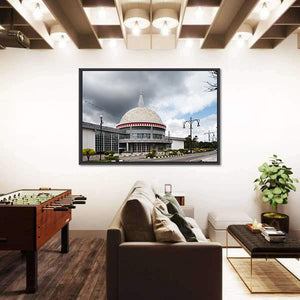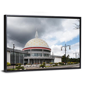 This canvas art beautifully captures the grand architecture of the Royal Regalia Museum in Brunei. Featuring a modern dome with striking geometric patterns and a distinctive red trim, it adds an imposing presence to your wall décor.