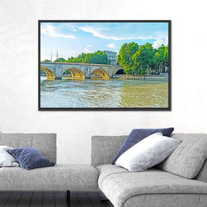 Sunlit Stone Arch Bridge Over River Canvas Wall Art
