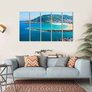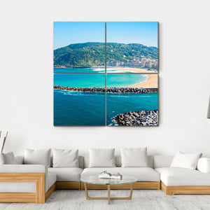 Capture the serene beauty of San Sebastian with this stunning canvas wall art featuring a high-angle view of a hillside town by the beach. The vibrant palette of blue and green evokes a sunny vacation vibe, making it a great addition to any room.