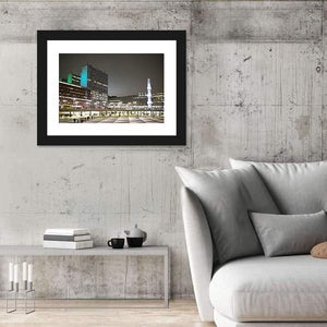 Capture the vibrant urban scene of Sergels Torg in Stockholm with this modern cityscape canvas. Featuring illuminated buildings, streetlights, and a distinctive checkerboard pavement, it brings a lively atmosphere to any space.