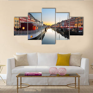 Boats in Nyhavn at Sunset Canvas Wall Art