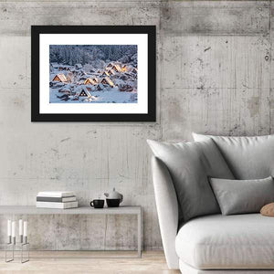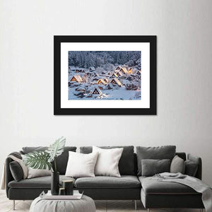 This canvas wall art captures a serene, snowy village scene with warm lights glowing from cozy houses. Its peaceful wintery atmosphere makes it a beautiful addition to your home decor.