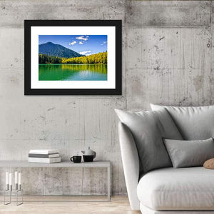 This canvas art captures the serene beauty of a Siberian lake, showcasing vibrant clouds reflecting on the water. Surrounded by mountains and autumn-colored trees, it creates a natural and calm atmosphere that enhances any space.