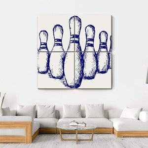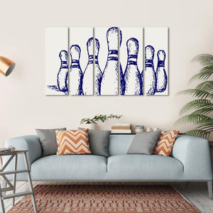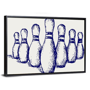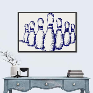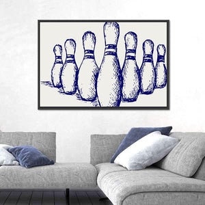 This playful canvas art features a hand-drawn sketch of bowling pins arranged in a triangular formation. The vibrant blue and white palette brings energy to any space, making it an engaging addition to your wall decor.