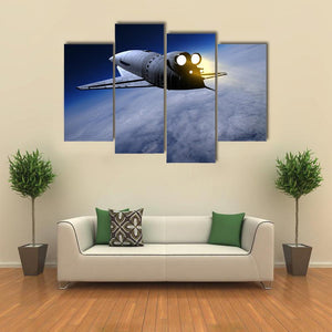 This captivating artwork features a glowing space shuttle soaring through clouds and above Earth. Its dynamic perspective and modern sci-fi style evoke a sense of adventure and awe, making it a striking addition to any room.