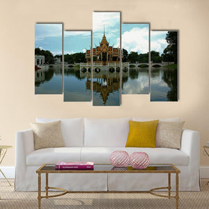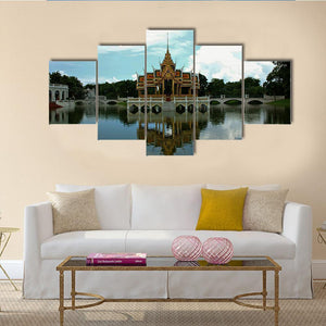 Golden Thai Pavilion with Lake Reflection Canvas Wall Art