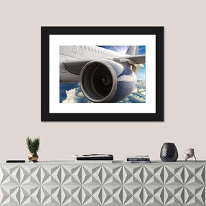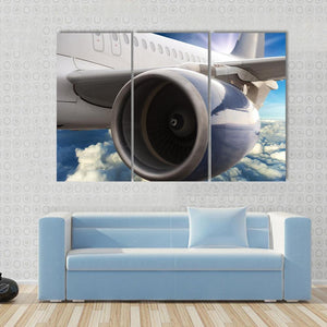 This canvas art captures the powerful essence of an airplane engine, showcasing its turbine blades against a backdrop of blue skies and reflective clouds. The awe-inspiring details convey a sense of majesty and strength, making it a striking addition to your wall decor.