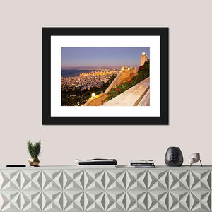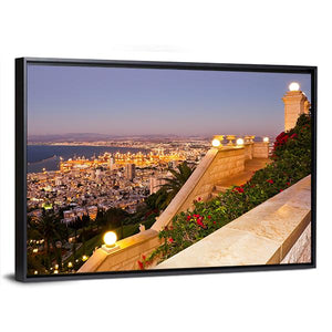 This canvas art features a captivating cityscape from Mount Carmel, showcasing twinkling city lights and a serene harbor against a clear sky. The peaceful mood and realistic style invite tranquility into your space.