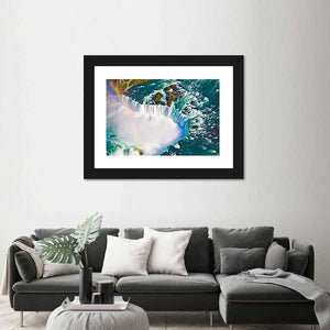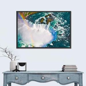 This stunning canvas art captures the majestic Niagara Falls with a vibrant rainbow arching through the mist. The powerful motion of the water and clear depiction of the falls evoke a sense of natural beauty, making it a striking piece for any wall decor.
