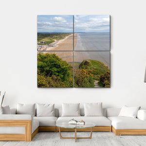 This canvas art captures the serene beauty of Rhossili Bay Beach, showcasing the stunning interplay of rolling waves, sandy shores, and vibrant green cliffs. Its natural and photorealistic style creates a tranquil atmosphere, perfect for any room in your home.