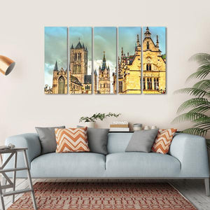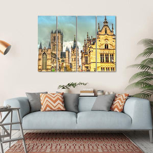 This canvas art depicts the majestic St. Nicholas Church, showcasing its stunning Gothic architecture. With rich tones of gold, blue, and green, it evokes a historic and awe-inspiring atmosphere, perfect for adding character to any room.
