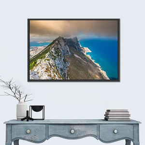 This canvas art captures the breathtaking cliffs and coastline of Gibraltar, showcasing a dramatic aerial view. With its serene blue and brown palette, it evokes a sense of expansive tranquility perfect for enhancing any living space.