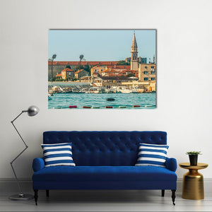 This canvas art captures a coastal town scene in Montenegro, featuring charming red-tiled roofs and a serene harbor. With its sunny and peaceful vibe, it adds a touch of vacation energy to any space.