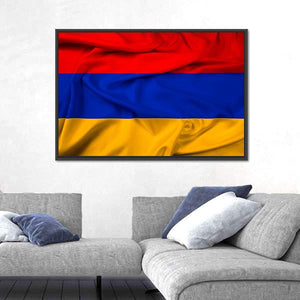 This vibrant canvas art features the flag of Armenia, painted in red, blue, and yellow. Its bold design and symmetrical composition evoke a sense of patriotism, making it a striking addition to any wall space.