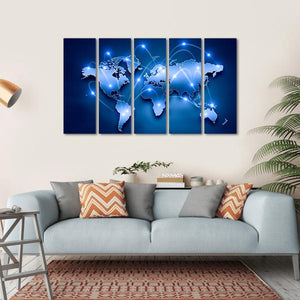 This abstract canvas art features a world map intertwined with glowing connection lines, evoking a sense of global connectivity. The blue and white palette immerses you in a technological vibe, making it a striking addition to modern decor.