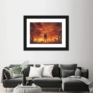 This "Zombie In The Burnt Cemetery" canvas wall art captures a haunting scene of a lone zombie wandering through a charred graveyard beneath a fiery sky. Expertly crafted, this striking piece evokes a powerful atmosphere that blends eerie mystery with dramatic intensity. Ideal for art enthusiasts or anyone seeking a bold statement piece, it adds a captivating and thought-provoking element to any room’s decor.