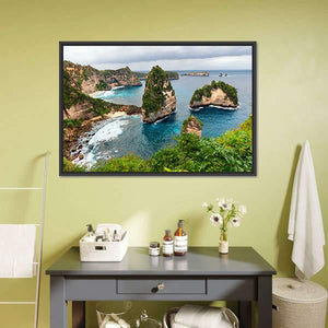 Experience the serene beauty of Atun Beach, Indonesia with this stunning canvas art. Featuring lush coastal cliffs, emerald waves, and rocky shorelines, it captures the majesty of nature in a picturesque landscape.
