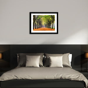 This canvas art captures a serene tree-lined path in Amsterdam, surrounded by vibrant autumn leaves. Peaceful and tranquil, it invites you to savor the warm hues of green, yellow, and orange, making it a lovely addition to your wall decor.