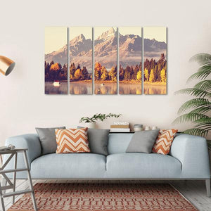 This canvas art captures the serene beauty of Grand Teton National Park in autumn, showcasing peaceful mountains, a tranquil lake, and trees adorned with vibrant fall foliage. It’s a stunning addition to any nature lover's collection.