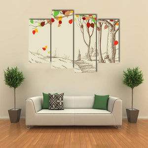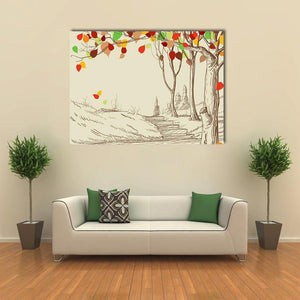 This canvas art beautifully depicts autumn trees and falling leaves, inviting a serene and peaceful atmosphere. The sketchy lines capture the essence of a tranquil path, perfect for enhancing any living space or office decor.