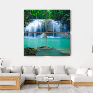 Immerse yourself in the calming beauty of nature with this Green Waterfall Canvas Wall Art. A serene scene of a tropical forest with a refreshing waterfall and clear turquoise water, it's designed to bring a tranquil atmosphere to your space.