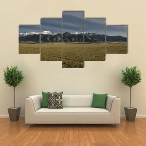Experience the tranquil beauty of the Bridger Mountains with this canvas wall art. Featuring a serene landscape of snow-capped peaks, expansive fields, and a cloudy sky, this piece captures the essence of nature's vastness.