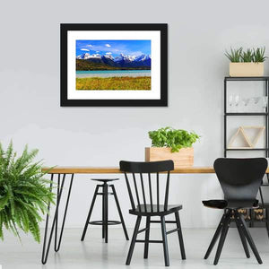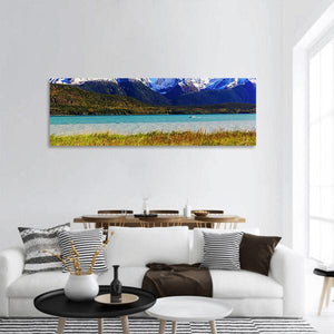 Experience the serene beauty of Sinclair Mountain and its turquoise waters with this panoramic canvas art. Featuring snow-capped mountains and lush grasslands, this artwork brings a vast and majestic touch to any space.