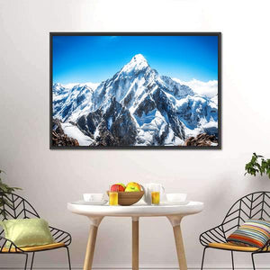 This panoramic canvas showcases a breathtaking snow-capped mountain range under a clear blue sky. The serene atmosphere and grand landscape evoke a sense of majesty, making it a perfect addition to any room decor.