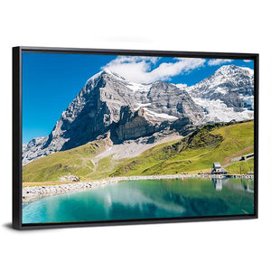 Experience the serene beauty of a mountain lake surrounded by snow-capped peaks. This realistic artwork captures the reflections in the water and the tranquil atmosphere of the alpine landscape, making it a peaceful addition to any space.