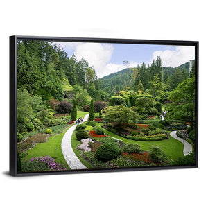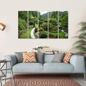 Capture the serene beauty of a lush garden with this canvas wall art. Featuring a winding path surrounded by vibrant flowers and trees, it brings a peaceful summer vibe to any space.
