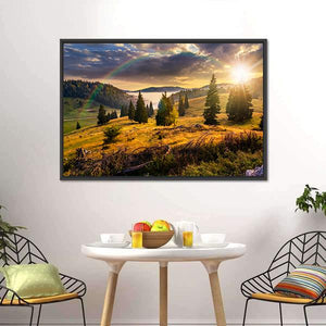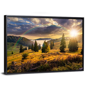 Hillside with Coniferous Forest and Rainbow Canvas Wall Art