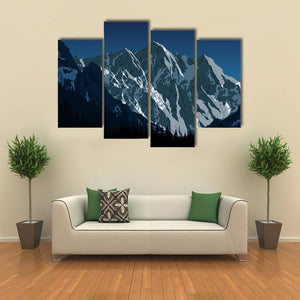 This canvas art features majestic mountains against a serene sky, capturing the beauty of nature in a stunning landscape. The strong diagonal lines and dark silhouettes of trees enhance the dramatic vibe, making it a striking addition to your decor.