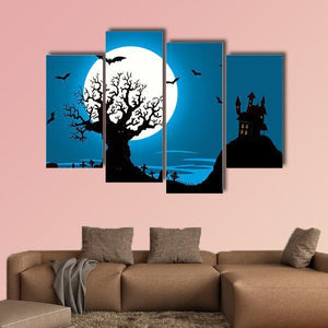 Haunted House Silhouette Under Full Moon Canvas Wall Art