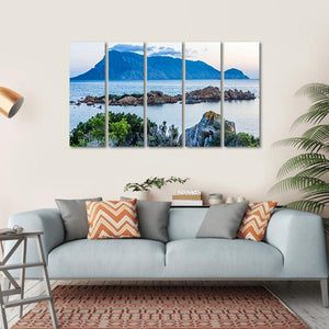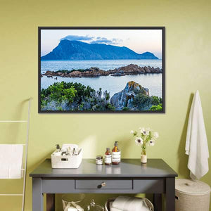 This artwork captures the serene beauty of Italy's rocky coastline, with mountains meeting the sea. The peaceful palette of blues and greens invites a sense of calm into your space.
