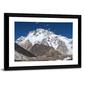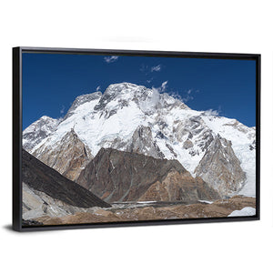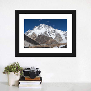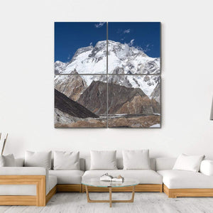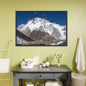 This canvas art captures the majestic K2 mountains, showcasing their snow-capped peaks against a clear blue sky. The rugged terrain with visible glaciers and dark slopes evokes a serene and grand atmosphere, making it a striking addition to any nature-themed decor.