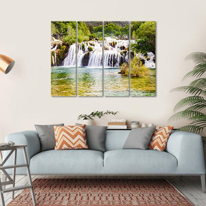 Experience the serene beauty of the Krka Waterfall with this captivating canvas art. This piece features cascading water amidst lush greenery, capturing a refreshing, natural atmosphere. Perfect for adding a touch of tranquility to your living space.
