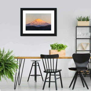 This photorealistic piece captures the serene beauty of Mount Fuji at sunrise, showcasing a majestic snow-capped peak beneath a clear sky. Its tranquil palette of whites, golds, and blues makes it a calming addition to any nature-inspired decor.