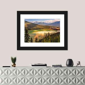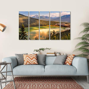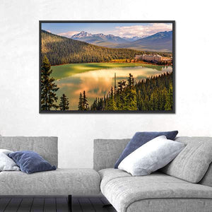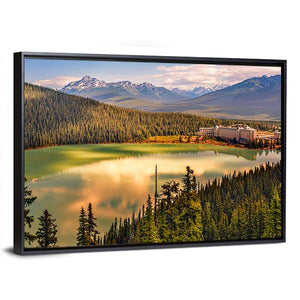 This breathtaking canvas captures the serene beauty of Lake Louise, surrounded by majestic snow-capped mountains and lush pine forests. The peaceful scene, with its vibrant greens and tranquil blues, invites a sense of calm and connection to nature.