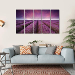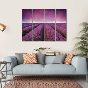 Capture the serene beauty of a lavender field at sunset with this stunning canvas print. Featuring rows of blooming lavender beneath a dreamy sky of purple, pink, and blue, it brings a tranquil ambiance to any space.