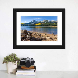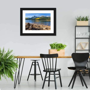 Lost Lake invites you into a serene landscape where crystal-clear waters reflect majestic snow-capped mountains. The scene comes alive with golden yellow leaves and weathered tree stumps, creating a peaceful atmosphere that's perfect for nature lovers.